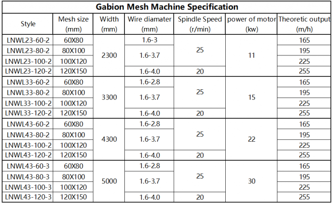 A set of gabion machine is including five parts: mesh weaving machine,spring coiling machine, wire tension machine and netting winding machine,payoff system.Our gabionmesh machines can make gabion mesh of various widthsand mesh sizes;it can weave heavily galvanized and zinc wire; high corrosionresistance zinc and PVC, GALFAN coated wire is also available.